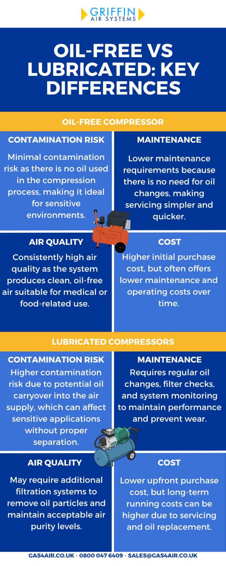 Choosing the right compressor can make or break your food or medical operation. Oil-free compressors UK provide superior air quality, compliance with stringent hygiene standards, and long-term operational savings. At Griffin Air Systems, we specialise in supplying and servicing food grade air compressors, dental oil free air compressors, and other non lubricated air compressors across the UK.
