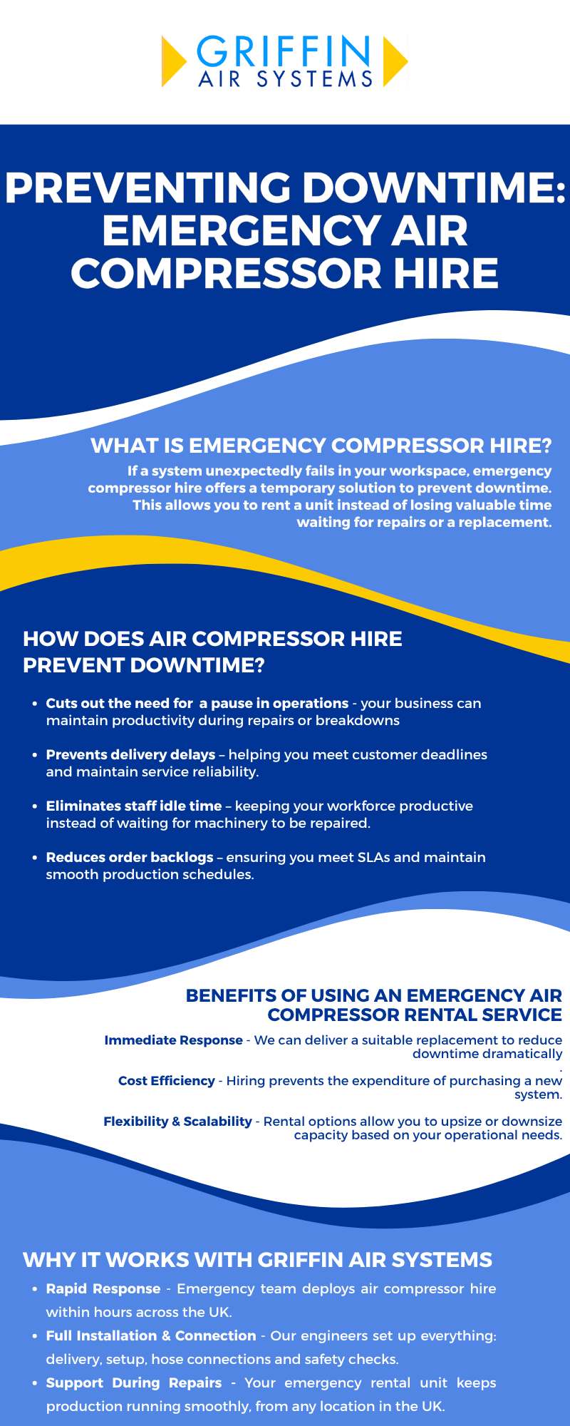 This article explains why air compressor hire is critical to preventing downtime, how emergency rental works, and what to look for in a reliable UK supplier like Griffin Air Systems.